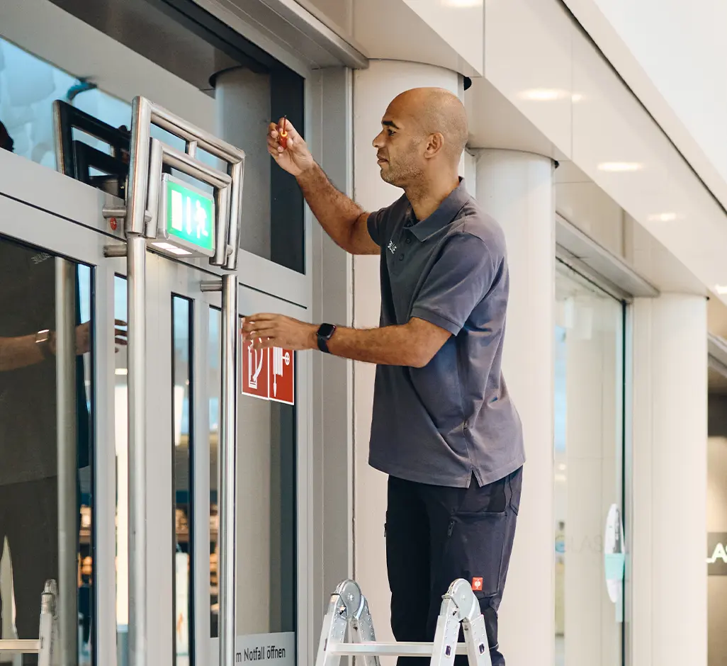- Überprüfung und Wartung von Automatiktüren und Rolltoren nach den jeweils aktuell geltenden Sicherheitsbestimmungen – inkl. Messungen nach ASR A1.7, die nur qualifizierte Sachverständige wie unsere BLUE-Servicetechniker durchführen dürfen