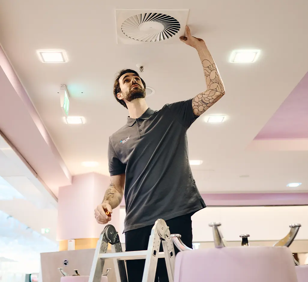 Unsere erfahrenen BLUE-Servicetechniker besuchen im festgelegten Turnus Ihre Filialen, schauen technisch nach dem Rechten und erledigen alles, womit Sie uns beauftragt haben. Von der Reinigung der Klimaanlage bis zur Erfüllung sämtlicher Betreiberpflichten ist jeder Service möglich.